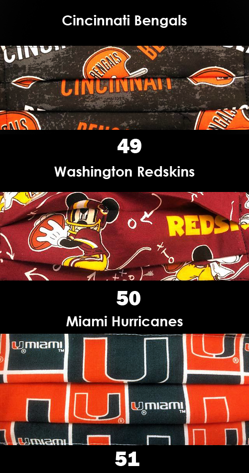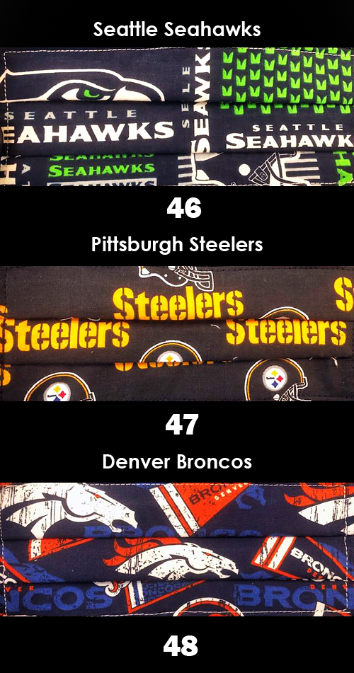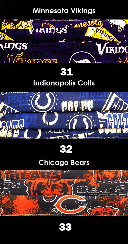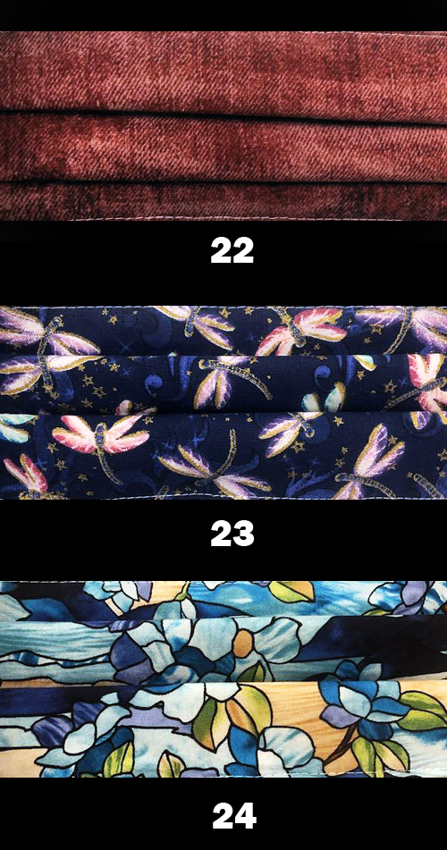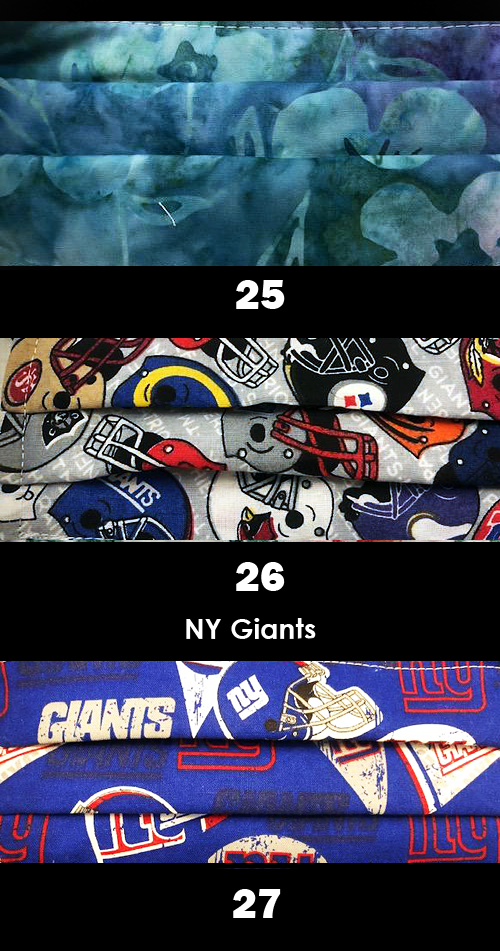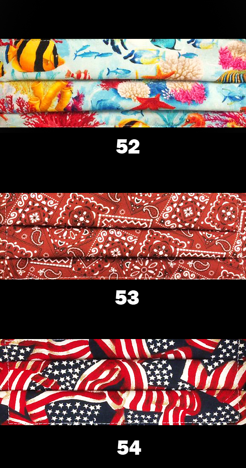Lots of 5 assorted hand made face masks. These face masks are made with 3 layers for added protection.